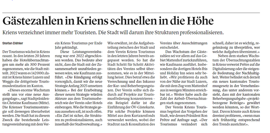 Gästezahlen in Kriens schnellen in die Höhe, 27. Juni 2024